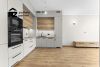 Mieszkanie wyposażona w sprzęty AGD firmy BOSCH: lodówka z zamrażalką, zmywarka, płyta 4 palnikowa, okap, piekarnik, pralka