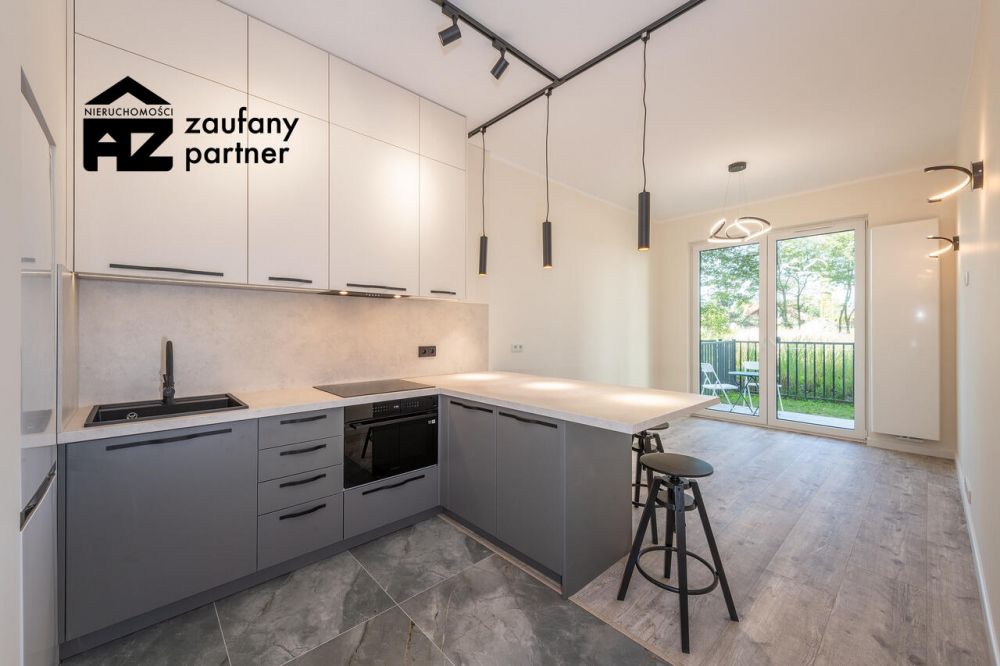 Mieszkanie wyposażona w sprzęty AGD firmy BOSCH: lodówka z zamrażalką, zmywarka, płyta 4 palnikowa, okap, piekarnik, pralka